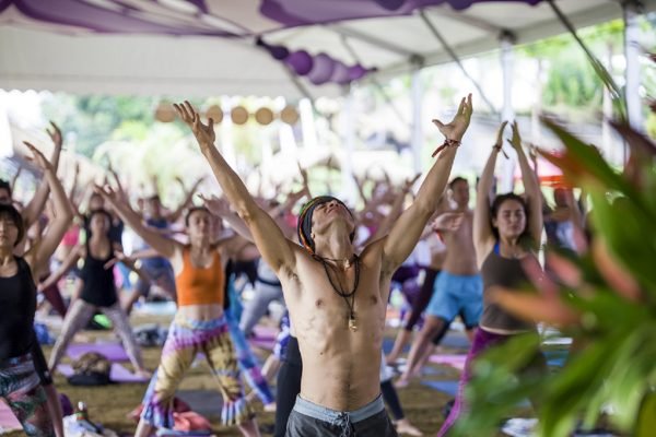 Yoga and Workshops take place under the spectacular Event Tent in a wooded area to the north of the main stage. With a carpeted floor and open-air feel, it makes for great yoga classes in the mornings and fun workshops in the afternoons. Â